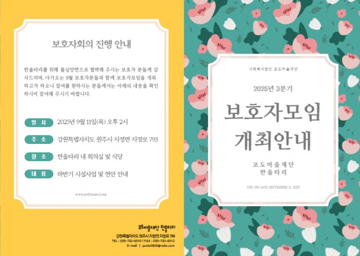 한울타리25-412(2025.9.2.)와 관련하여, 다음과 같이 보호자회의를 공고합니다.