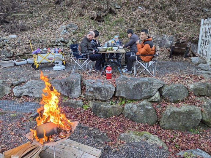 늦가을의 차가운 공기와 모닥불의 따뜻함을 느끼며