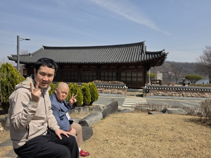 충주호의 탁 트인 호수와 고즈넉한 한옥을 바라보니